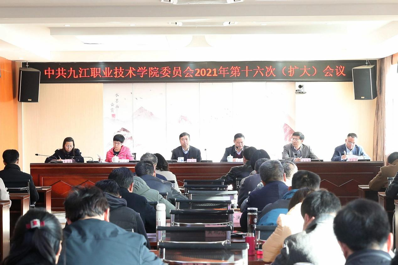 九江职院新闻网讯(党委宣传部)12月1日,学校党委书记胡永红主持召开2021年第16次党委(扩大)会议,专题学习江西省第十五次党代会精神和省委十五届一次全会精神,落实第22次工委会议要求,研究部署学校学习宣传贯彻工作。党委副书记、校长曾青生出席。