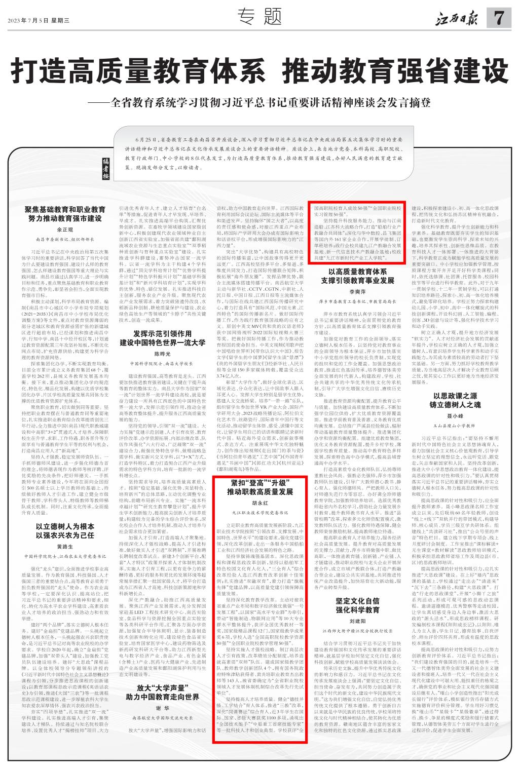 《江西日报》2023年7月5日7版《专题》版版面报道。